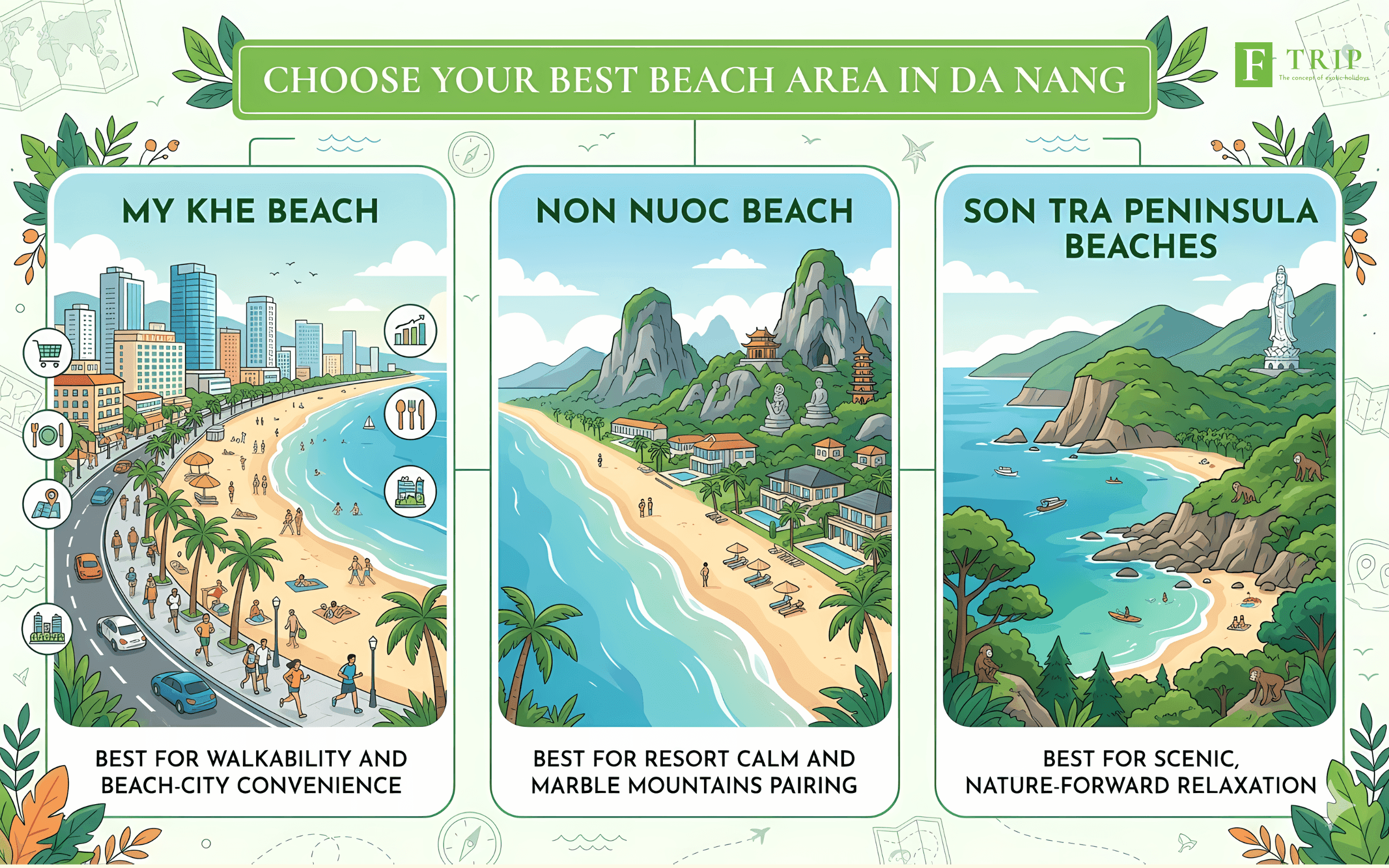 Choose My Khe if you want convenience and easy dining access. Choose Non Nuoc if you want a quieter resort-style coastline. Choose Son Tra access if scenery matters more than walkability. These distinctions follow how official Da Nang and Vietnam tourism sources describe the main areas.