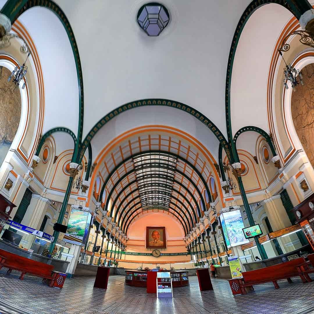Next to the Basilica is the Saigon Central Post Office. Often credited to architect Gustave Eiffel, it was designed by Alfred Foulhoux and Auguste Henri Vildieu, the latter having designed several grand administrative buildings in Hanoi for the French colonial government. It was constructed in a blend of French and Asian aesthetics. Once, it was the working place of the last public letter-writer in Vietnam. Duong Van Ngo worked for over 70 years, using his fluency in five languages to help guests contact people around the globe. He retired in 2021 due to his age.
