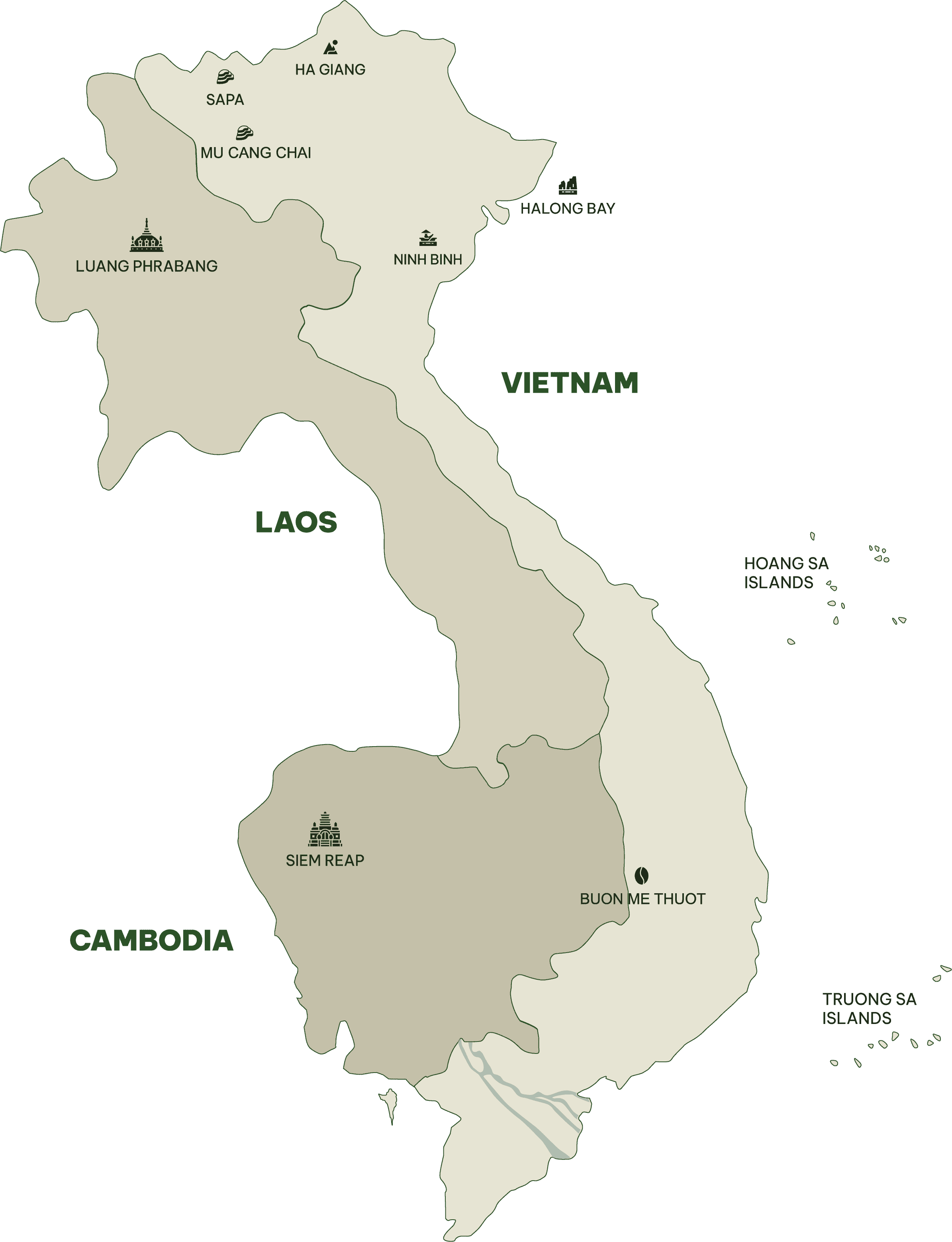 The Photography of Vietnam, Laos, and Cambodia tour packages in 17 days: Hanoi (Vietnam) -> Ninh Binh (Vietnam) -> Ha Giang (Vietnam) -> Sapa (Vietnam) -> Dien Bien (Vietnam) -> Luang Prabang (Laos) -> Siem Reap & Angkor Wat (Cambodia)